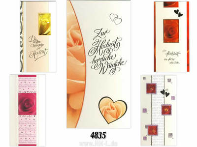 Hochzeits-Karte mit Blumen-Motiven und Gold-Druck, einzeln mit Kuvert in Cellophan verpackt