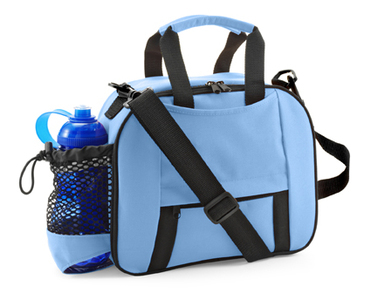 Kuehltasche 'Ice' aus 600D Polyester inklusive Tragegriffen, Schultergurt und Dosenfach, Farbe: Hellblau, Groesse: 27,5 x 24 x 11,5 cm