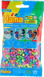 Beutel mit 1000 HAMA-Perlen im Pastell-Mix:6 Farben (Pastellgelb, Pastellrot, Pastelllila, Pastellblau, Pastellgrün, Pastellpink).Ab 5 Jahren.