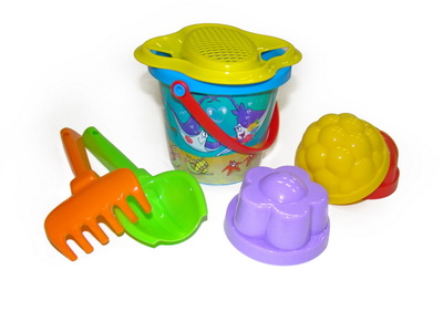 Set Nr. 216: Eimer mit Bild klein, Sieb-Blumen, Schaufel Nr.2, Rechen Nr.2, 3 FörmchenDieses farbenfrohe Eimer Set mit Bild ist für Kinder wirklich interessant!Der Fantasie sind mit diesem Set keine Grenzen gesetzt und die Teile finden alle im schönen Eimer Platz.Viel Spaß bringt dieses Set mit Zubehör!-Abmaße BxH mm (130x100)-7-teilig Eimer Set-Verpackung im Netz-Eimer mit Bild klein-Sieb-Blumen -1x Schaufel-1x Rechen -3x Sandförmchen-Farben können variieren-Hochwertiger Kunststoff