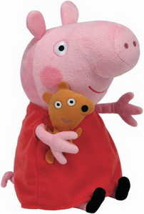 Original Beanie.Peppa Pig mit rotem Kleid und Bär.Größe: ca. 25 cm.Altersempfehlung ab 3 Jahren.Handwäsche.