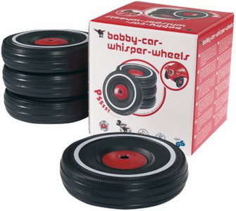 Kinder lieben das kernige Motorengeräusch , das die Räder des BIG-BOBBY-CAR bei heißen Spritztouren über den Asphalt erzeugen. V iele Eltern hätten es gelegentlich gerne etwas leiser. Für sie bietet BIG zum Nachrüsten für das BIG-BOBBY-CAR-CLASSIC den Rädersatz BIG-WHISPER-WHEELS an. Durch die spezielle Gummimischung rollt der rote Flitzer damit deutlich leiser durch Gärten und Kinderzimmer . Der Rädersatz lässt sich mit dem enthaltenen Montagewerkzeug an allen BIG-BOBBY-CAR-CLASSIC befestigen. Hierzu müssen die Hutclips der montierten Räder entfernt werden. Im Paket sind Befestigungsclips sowie eine leicht verständliche Montageanleitung enthalten. Ab 1 Jahr.Preis bezieht sich auf 1 Stück.