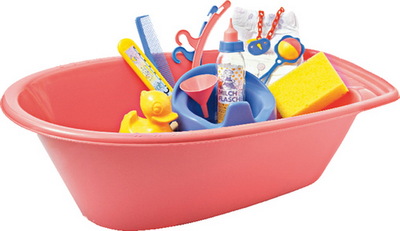 Große Puppenbadewanne mit sehr viel Zubehör für die kleine Puppenmutti zum Baden, zur Pfl ege und zum Füttern ihres Puppenbabys.Grö ße ca. 51x28x16 cm.Ab 3 Jahren.Achtung! Nicht für Kinder unter 36 Monaten geeignet.Enthält Kleinteile, die verschluckt werden können (Erstickungsgefahr)! WARNUNG! Erstickungsgefahr wegen verschluckbarer kleinen Kugel! Hinweis aufbewahren.Preis bezieht sich auf 1 Stück.