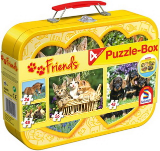 Puzzle Haustiere, Puzzle-Box 2x26, 2x48 Teile im Metallkoffer, 1Set