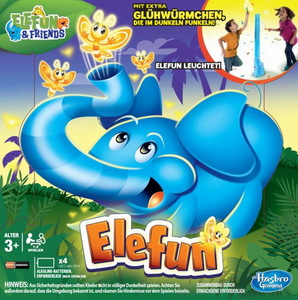Das beliebte Kinderspiel Elefun in neuem Gewand: Schmetterlinge fangen ist der große Spielspaß, wenn Elefun sie unerwartet aus seinem langen Rüssel in die Luft pustet.Neben bunten Schmetterlingen gibt es jetzt auch zusätzlich Glühwürmchen zu fangen, die im Dunkeln funkeln.Jetzt auch neu: Elefun leuchtet und die Nachfüllöffnung durch Elefuns Mund sorgt für verlängerten Spielspaß.Für 1-2 Spieler.Ab 3 Jahren.Spieldauer: ca. 10 Minuten.