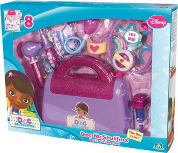 Der original Arztkoffer aus der Disney Serie Doc McStuffins.So werden auch die Mädchen zuhause zu kleinen Spielzeugärtzinnen.Inhalt: 1 Arztkoffer, 1 Otoskop, 1 Thermometer, 1 Spritze, 1 Blutdruckmesgerät, 1 Stethoskop mit Leutfunktion, 1 Bandagenverband, 11 Sticker.Geeignet für Kinder ab 3 Jahren.