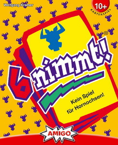 Für 2-10 Spieler. Ab 10 Jahren. Spieldauer: ca. 45 Minuten. bringt viele Minuspunkte. Reihe legt, muss die ersten fünf Karten nehmen. Und das von vier Kartenreihen anlegt. Wer die sechste Karte in eine Jeder Spieler erhält 10 Karten, die er möglichst schlau an eine Ende die wenigsten Hornochsen hat. für jeden Hornochsen einen Minuspunkt ein. Sieger ist, wer am Karten zu kassieren. Jede Karte die man nehmen muss, bringt Kartenspiel, das einen nicht mehr loslässt. Ziel ist es, keine Bei 6 nimmt! ist der Name Programm. Es ist ein raffiniertes den Hornochsen eine zeitgemäße Überarbeitung! Seit über 17 Jahren ein beliebter Klassiker, erhält das Spiel mit