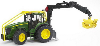 Bruder John Deere 7930 ForsttraktorDer Forsttraktor von John Deere ist mit einem in die Höhe verstellbaren und schwenkbaren Kran ausgestattet, der einen neu entwickelten Greifer mit automatischem Schließmechanismus besitzt.Durch den detailgetreuen Überrollbügel und das abnehmbare Rückeschild mit integrierter Seilwinde wird der John Deere 7930 endgültig zum forstwirtschaftlichen Multitalent.Neben dem großen Funktionsumfang und zahlreichen Erweiterungsmöglichkeiten, trägt auch die Optik des Forsttraktors dazu bei, dass auch nach langer Zeit der Spielspaß nicht nachlässt.Dieser Forsttraktor ist sehr detailgetreu nach dem Vorbild hergestellt und zeichnet sich durch eine hohe Qualität und Robustheit aus.Maßstab 1:16Ab 4 Jahren.