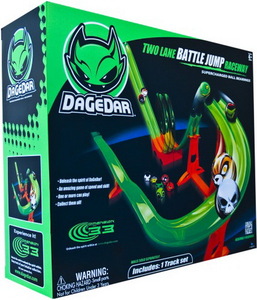 DaGeDar - das neue actiongeladene Spiel, bei dem es gleichzeitig darum geht so viele verschiedene unberechenbare Charaktere zu samme ln, wie auch in den Kopf-an-Kopf-Rennen in den speziellen DaGeDar Rennbahnen einen perfekten Auftritt hinzulegen. Bei der Battle Jum p Track starten zwei DaGeDars gleichzeitig über die fast vertikale Startrampe ins Rennen. Sofort nach dem spektakulären Looping geht es über den heißen Sprung in das Duell den Gegenspieler auf der Zielgeraden zu überholen und mit dem richtigen DaGeDar der erste im Ziel zu sein. Die Battle Jump Track ist sicher nichts für schwache Nerven und bringt auch erfahrene Spieler ins Schwitzen. Jede Pac kung enthält 1 Dual Start Gate Track, 1 Dual Runway Track, 1 Dual Entry Track, 1 Dual Loop Bridge, 1 Dual Jump, 1 Jump Support, 1 Su pport Bridge Beam, 1 Tall Support, 1 Flared Catch Track, 1 Curve Track, 1 Medium Support, 1 Slope Track, 1 Short Support, 1 End Trac k, 1 End Cap, 1 Ramp Support, sowie eine Anleitung. Ab 4 Jahren.Für Kinder unter 36 Monaten nicht geeignet. Erstickungsgefahr wegen verschluckbarer Kleinteile.Preis bezieht sich auf 1 Stück.