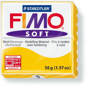 FIMO, Modelliermasse, Knete sonnengelb soft normalofenhärtend (30min bei 110}C/230}F)weich und softleicht zu mischensofort modellierfähigDer Preis bezieht sich auf 1 Stück.