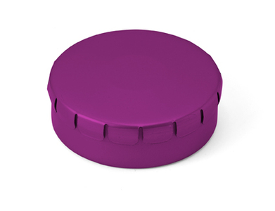 Pfefferminzbonbons 'Novel' in Metalldose, zuckerfrei, Farbe: Dunkellila, Groesse: Ø 4,7 x 1,5 cm