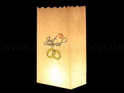 Produktname:Lichttüten Kerzentüten bedruckt "Just Married"