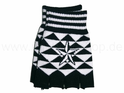 FH-15 Fingerlose Handschuhe Karos schwarzweiß Ster