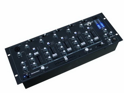 Professioneller 5-Kanal DJ-Mixer-5 Eingangskanäle mit Vorverstärkungsregler, 3-Band Equalizer, Cue-Taste und hochwertigen, super leichtgängigem Kanalfader-1 DJ-Mikrofonkanal mit Talkover-Schalter, Lautstärkeregler und 2-Band Equalizer-Vorhören aller Stereo-Eingangskanäle und der Mastersumme über regelbaren Stereo-Kopfhörerausgang-Austauschbarer Crossfader-10-stellige Stereo-LED-Pegelanzeige, Masterregler und Balanceregler-Regelbarer Zone-Ausgang und masterunabhänginger Record-Ausgang-Eingänge: 6 x Line, 2 x Phono/Line (Stereo-Cinch), umschaltbar, 2 x Mikrofon, 1 x Mikrofon und Kopfhörer-Ausgänge: Master (3-pol. XLR, Stereo-Cinch), Zone und Record (beide Stereo-Cinch)-Spannungsversorgung über mitgeliefertes Netzteil-Rackeinbau, 4 HE-Spannungsversorgung: 230 V AC, 50 Hz ~, über mitgeliefertes Netzteil-Gesamtanschlusswert: 30 W-Eingänge: DJ MIC (frontseitig): Kombination XLR/6,3-mm-Klinke-MIC 1, 2 (rückseitig): 6,3-mm-Klinke (sym.)-Impedanz: 1 kOhm-Mindesteingangsspannung: 1,5 mV RMS-LINE 1-5: Stereo-Cinch-Impedanz: 27 kOhm-Mindesteingangsspannung: 150 mV RMS-PHONO 1,2: Stereo-Cinch-Impedanz: 47 kOhm-Mindesteingangsspannung: 3 mV RMS-Ausgänge: MASTER: Stereo-Cinch, Stereo-XLR (3-pol.)-ZONE: Stereo-Cinch-Impedanz: 400 Ohm-Ausgangsspannung: 1 V RMS/ 0 dB-REC: Stereo-Cinch-Impedanz: 5 kOhm-Ausgangsspannung: 225 mV RMS-Kopfhörer: 6,3-mm-Stereo-Klinke (mind. 16 Ohm)-Klangregelung (DJ-Mikrofon): 1 x Höhen: -12 dB bis +12 dB/ 1 KHz, ±1 dB-1 x Bässe: -12 dB bis +12 dB/ 1 KHz, ±1 dB-Klangregelung (Kanäle 1-5): 5 x Höhen: -15 dB bis +15 dB/ 40 Hz, ±1 dB-5 x Mitten: -15 dB bis +15 dB/ 40 Hz, ±1 dB-5 x Bässe: -15 dB bis +15 dB/ 40 Hz, ±1 dB-Geräuschspannungsabstand: >80 dB-Frequenzbereich: 20-20000 Hz-Verzerrung: 0,02%-Maße (BxTxH): 483 x 179 x 94 mm (19 Zoll , 4 HE)-Gewicht: 4 kg