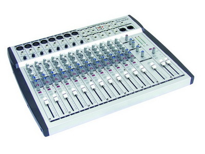 Professionelles 16-Kanal Studio-MischpultLow noise 16-Kanal Mic/Line-Mischpult8 mono Eingänge mit XLR-Buchsen, +48V Phantomspeisung und symmetrischen Line-EingängenInsert bzw. Direct Out für jeden Mono-Kanal4 stereo Eingänge mit symmetrischen 6,3-mm-Klinkenbuchsen3-Band-EQ mit semi-parametrischen Mitten- in allen Mono-Eingängen4-Band-EQ in allen Stereo-EingängenPeak-LED und schaltbarer Low Cut pro mono Eingang2 Aux-Send (pre/post) in jedem Kanal für die Ansteuerung externer Effektgeräte oder zum Monitoring1 stereo Aux-Return mit symmetrischen 6,3-mm-KlinkenbuchsenSeparate Master, Booth- und Kopfhörer-AusgängeTape-Eingang und -AusgangPräzise 10-LED Meter60-mm QualitätsfaderSpannungsversorgung: 2 x 20 V AC, 50/60 Hz ~über mitgeliefertes NetzteilGesamtanschlusswert: 25 WEingänge:8 mono XLR oder Klinke symmetrisch8 Inserts Klinke4 stereo Klinke symmetrisch2 Aux-Return Klinke symmetrisch1 Tape In CinchAusgänge:2 Main Mix-Out XLR und Klinke symmetrisch1 Control Room Out Klinke symmetrisch2 Aux-Send Klinke symmetrisch4 Direct Out Klinke1 Tape Out CinchHeadphones Klinke unsymmetrischFrequenzgang:Mikrofon: 10 Hz - 60 kHz, ±3 dBMono: 10 Hz - 60 kHz, ±3 dBStereo: 10 Hz - 55 kHz, ±3 dBVerzerrung: 0,01 %Geräuschspannungsabstand: 112 dBRegelbereich/Monokanal:Höhen: ±15 dB bei 12 kHzMitten: ±15 dB bei 250 Hz - 6 kHzBässe: ±15 dB bei 80 HzRegelbereich/Stereokanal:Höhen: ±15 dB bei 12 kHzHi Mid: ±15 dB bei 3 kHzLo Mid: ±15 dB bei 500 HzBässe: ±15 dB bei 80 HzMaße (BxTxH): 480 x 400 x 55 mmGewicht: 7 kg