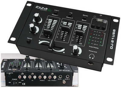Kompakter 2-Kanal Mixer mit allen wichtigen Funktionen und - einem ganz besonderen Clou: einer USB-Buchse zur direkten Wiedergabe von MP3-Files über den Mixer. Weitere Ausstattung: - Crossfader - Gaincontrol für beide Kanäle + Master - 2x Phono/Line-In - Mikro-In - 1x Line-Out - Talkover-Button - Kopfhörer-Anschluss - LED Levelmeter - LxBxH 23x13x6cm.Betrieb über mitgeliefertes Netzteil 12V ~.