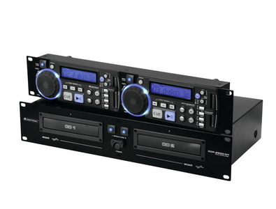 Doppel-CD-Player mit Mastertempo-FunktionDoppel-CD-Player für DJsMastertempo-Funktion (gleichbleibende Tonhöhe bei Geschwindigkeitsänderung)2 x 40 Sekunden Anti-Shock-PufferAlphanumerische LCD-Displays (blau hinterleuchtet)Beleuchtet Jogdials mit Moduswahl: Pitch Bend, schnelle oder framegenaue SucheBequeme Titelwahl über Skip- und +10-TastenPitchregelung ±4 %, ±8 %, ±16 %Pitch-Bend-TastenCue-FunktionNahtlose Loop/Reloop-FunktionEinzel- oder GesamttitelwiedergabeWiederholfunktionenTitelprogrammierungAnzeige von Titelabspielzeit, Titelrestspielzeit oder GesamtrestspielzeitBargraph-AnzeigeAnzeige der Geschwindigkeitsänderung in %Große hinterleuchtete Tasten für Play/Pause und Cue19''-Maße für RackeinbauSpannungsversorgung: 100-240 V AC, 50/60 Hz ~Gesamtanschlusswert: 30 WTyp: Doppel-CD-PlayerGeeignete CDs: CD/-R/-RW im CD-DA-Format (8 und 12 cm)Geschwindigkeitsanpassung: ±4 %, ±8 %, ±16 %Display: Titelabspielzeit, Titelrestspielzeit, GesamtrestspielzeitKlirrfaktor: 0,09 %Geräuschspannungsabstand: 70 dBFrequenzgang: 20-20.000 HzAudioausgang: 2 x Stereo-Cinch/ 2 VMaße (LxBxH) : 483 x 260 x 97 mm (CD-Player),483 x 85 x 90 mm (Steuerung),19''-Maße mit je 2 HEGewicht: 6 kg