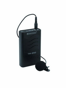 VHF-TaschensendersetSet enthält Taschensender und Lavalier-MikrofonPassend zu dem Empfänger VHF-450 mit gleicher TrägerfrequenzBetrieb mit VHF-Festfrequenz 174,100 MHzOn/Off/Mute-BetriebswahlschalterLED-Anzeige für BatteriekapazitätSendeleistung 8,5 mW3,5-mm-Klinke-Schraubverbindung zu Kopfbügel- oder Lavalier-MikrofonStromversorgung über 9-V-Block (inkl.)Anmelde- und gebührenpflichtigTrägerfrequenz: VHF 174,100 MHzModulation: FM, F3FFrequenzstabilität: <± 30 ppmSchwellenwert: <0,5 % bei 1 KHzAudiobandbreite: 40 - 15 kHz (± 3 dB)Frequenzhub: ± 25 kHzRF-Ausgangsleistung: 8,5 mWSpannungsversorgung: 9-V-BlockLebensdauer der Batterie: ca. 6 StundenMaße (LxBxH): 106,5 x 64,5 x 31,5 mmGewicht: 80 g