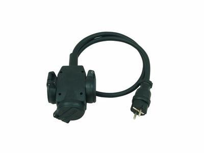 Die Dreifach-Verlängerung für die VeranstaltungstechnikSchwere Gummischlauchleitung mit anmontiertem Schutzkontakt-Gummistecker Vollgummi-DreiwegekupplungMit selbstschließenden KlappdeckelnH07RN Qualität für permanenten Outdoor-Einsatz250 V/16 A mit 3 x 2,5 mm²Nicht mit Baumarktware vergleichbar