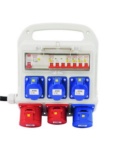 Baustromverteiler 2 x 32 A, 1 x 16 A, 3 x 230 VKunststoffbox mit 3 Schutzkontaktsteckdosen1 x 32 A CEE-Eingang mit 2-Meter-Kabel1 x 32 A CEE-Ausgang, 5-polig1 x 32 A CEE-Ausgang, 3-polig1 x 16 A CEE-Ausgang, 5-poligDer gesamte Verteiler ist über einen 30-mA-Fehlerstromschutzschalter (RCD) abgesichertSpannungsversorgung: 380-400 V AC, 50 Hz ~Max. Gesamtleistung: 22080 WMax. Gesamtstrom: 96 AMax. Nennleistung/Phase (32 A CEE): 7360 WMax. Nennstrom/Phase (32 A CEE): 32 AMax. Nennleistung/Phase (16 A CEE): 3680 WMax. Nennstrom/Phase (16 A CEE): 16 AMax. Nennleistung/Kanal (Schutzkontakt): 3680 WMax. Nennstrom/Kanal (Schutzkontakt): 16 AMaße (LxBxH): 350 x 340 x 130 mmGewicht: 4,5 kg