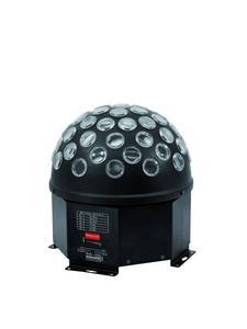 Spiegelkugeleffekt mit TCL-FarbmischungHalbkugel mit 55 LinsenBestückung mit 1 x 10 W TCL (tricolor)Besonders helle Leuchtkraft der LEDLange Lebensdauer der LEDBis zu 20 Umdrehungen pro MinuteMusiksteuerung über eingebautes MikrofonMikrofonempfindlichkeit über Drehregler einstellbarStrobeeffektAuto ModeInternes ProgrammStufenlose RGB-FarbmischungGeschwindigkeit der Farbwechsel und Strobeeffekt einstellbarDMX-gesteuerter Betrieb oder Standalone-Betrieb mit Master-/Slave-Funktion möglichUnzählige EinsatzmöglichkeitenBeim Einsatz von Nebel kommt dieser Effekt besonders gut zur GeltungIdeal für Bands, Bühnen oder AlleinunterhalterHängende oder stehende Installation möglichInklusive Hängebügel zur Montage an einem Trussing SystemAnschlussfertig mit Netzleitung und SchutzkontaktsteckerDIP-Schalter zur Einstellung der DMX-Startadresse, Standalone-Programme mit Master-/Slave-Funktion und der GeschwindigkeitDMX512-Steuerung über jeden handelsüblichen DMX-Controller möglichVorteile der LED-Technologie: lange Lebensdauer der LEDs, niedriger Gesamtanschlusswert, minimale Wärmeentwicklung, quasi wartungsfrei bei brillantem AbstrahlverhaltenSpannungsversorgung: 230 V AC, 50 Hz ~Gesamtanschlusswert: 25 WRotationsgeschwindigkeit: ca. 20 U/Min.LED-Typ: 10 W TCLAnzahl der LEDs: 1Musiksteuerung: über eingebautes MikrofonDMX-Steuerkanäle: 6DMX512-Anschluss: 3-pol. XLRMaße (LxBxH): 250 x 250 x 265 mmGewicht: 3,3 kg