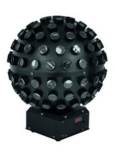 Spiegelkugeleffekt mit TCL-LEDsKugel mit 124 LinsenBestückung mit 5 x 4-W-TCL-LED (tricolor)Besonders helle Leuchtkraft der LEDsBis zu 14 Umdrehungen pro MinuteMusiksteuerung über eingebautes MikrofonMikrofonempfindlichkeit über Drehregler einstellbarStrobeeffektAuto ModeInternes ProgrammGeschwindigkeit der Farbwechsel und Strobeeffekt einstellbarDMX-gesteuerter Betrieb oder Standalone-Betrieb mit Master-/Slave-Funktion möglichUnzählige EinsatzmöglichkeitenBeim Einsatz von Nebel kommt dieser Effekt besonders gut zur GeltungIdeal für Bands, Bühnen oder AlleinunterhalterHängende oder stehende Installation möglichInklusive Hängebügel zur Montage an einem Trussing SystemAnschlussfertig mit Netzleitung und SchutzkontaktsteckerAdressierung und Einstellung über Steuereinheit mit 4-stelliger LED-Anzeige und drei BedientastenDMX512-Steuerung über jeden handelsüblichen DMX-Controller möglichSpannungsversorgung: 230 V AC, 50 Hz ~Gesamtanschlusswert: 30 W/75 VARotationsgeschwindigkeit: ca. 14 U/Min.LED-Typ: 4 W-TCLAnzahl der LEDs: 5Musiksteuerung: über eingebautes MikrofonDMX-Kanäle: 4DMX512-Anschluss: 3-pol. XLRMaße (LxBxH): 320 x 320 x 380 mmGewicht: 3 kg