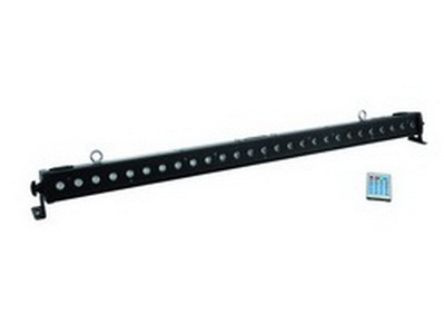 UV-LED-Leiste mit Infrarot-FernbedienungVielseitige UV-Effekte möglichBestens geeignet zu Beleuchtungs- und Dekorationszwecken (z. B. in Treppenhäusern, Kinos, Theatern, Korridoren oder Gängen, Ausstellungsräumen, etc.)Steuerung über Steuereinheit mit LED-Anzeige, IR-Fernsteuerung oder jeden handelsüblichen DMX512-Controller möglich (belegt 2 Kanäle)Komfortable Adressierung und Einstellung über Steuereinheit mit LED-Anzeige und 3 BedientastenFunktionen: Dimming, Musiksteuerung, Strobeeffekt, Master/SlaveHängende als auch stehende Installation möglichArretiermöglichkeit an den MontagebügelnÄußerst kompaktes und formschönes GehäuseBestückung mit 27 x 1-W-UV-LEDAnschlussfertig über Netzanschlussleitung mit SchutzkontaktsteckerDurchschleifausgang zur Spannungsversorgung eines weiteren GerätesNach jeweils 8 Geräten muss neu eingespeist werdenSpannungsversorgung: 230 V AC, 50 Hz ~Gesamtanschlusswert: 50 W/85 VADMX-Kanäle: 2DMX 512-Anschluss: 3-pol. XLRLED-Typ: 1 W UVAnzahl der LEDs: 27Abstrahlwinkel: 25}Maße (LxBxH): 1075 x 65 x 90Gewicht: 3 kg