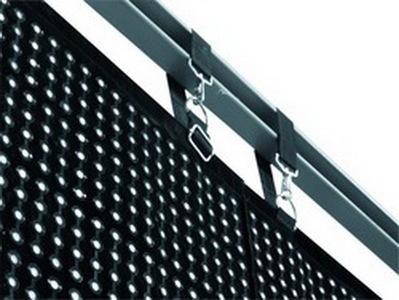 LED Soft DisplaysFlexible Displays mit Tricolor-RGB-LEDs (Typ SMD 5050) für helle und farbenfrohe Darstellung von Videos und GrafikenVerbindungssystem mit Druckknöpfen und KlettstreifenModulares Displaykonzept erlaubt die Erweiterung zu großen FlächenBiegsames und faltbares PVC-Material, auch geeignet für Säulen-, Kreis- und Winkelformen Schnelle und unkomplizierte Installation im Innen- und Außenbereich (IP 44)Hängende Montage an Traversen über integrierte GurteWasserabweisend und schwer entflammbarGeringes Gewicht und niedriger Platzbedarf für komfortablen TransportLeichte Wartung - LEDs können problemlos ausgetauscht werdenSteuerbar über separat erhältliche Netzwerkkomponenten und PC-SoftwareAll-in-one-Steuersystem T9 (80503300): Netzwerkinterface und Software LED Show T9 - ideales System für den mobilen Einsatz mit einem Notebook mit 1-Gigabit-NetzwerkkarteSteuersystem LED Studio: Empfängerinterface (80503310), PCI-Senderkarte und Software LED Studio (80503130)Empfohlene Mediensoftware: MADRIXNetzausgang für die Weiterleitung der StromversorgungSpannungsversorgung: 90-260V AC, 50/60Hz ~Gesamtanschlusswert: 20W/m²Auflösung (BxH): 32x64 PixelLebensdauer: ca. 100000hDisplay-Anschluss: DVI/RJ45Anzeigemodus: synchron zum VideoDrivemodus: 1/8 ScanBildschirmauflösung: empf. 1024x768, max. 1280x1024Helligkeit: 1270cd/m² (Nits)Blickwinkel: 110}Aktualisierungsrate: 60HzWiederholrate: 600HzFarben: 16,7 Millionen (R256, G256, B256)Betriebstemperatur: -10 bis 45}CLuftfeuchte: 10-90%Maße (BxH): 1,2x2,4mGewicht: 3,2kg/m²