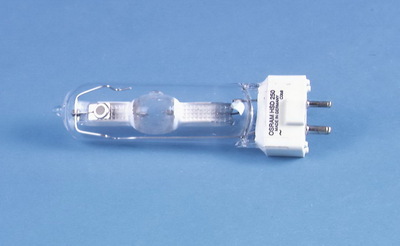HMI / MSR / HMP / OMI LampenExtrem hohe LichtausbeuteBeste FarbwiedergabeDrei- bis vierfach höhere Lichtausbeute gegenüber GlühlichtLicht wird über einen Lichtbogen zwischen zwei Elektroden erzeugtTageslichtähnliches Spektrum (zwischen 4500 und 6500 K)Konstantes Farbtemperatur und Farbwiedergabeverhalten über die komplette LebensdauerHalogenmetalldampflampen haben ein aus vielen Linien bestehendes Spektrum, im Gegensatz zu Temperaturstrahlern wie z. B. Halogen-GlühlampenLampentyp: Halogen-MetalldampflampeHersteller: OSRAMLampenspannung: 90 VLampenleistung: 250 WLampenstrom: 3,1 ASockel: GY-9,5Lichtstrom: 17000 LmBrennstellung: BeliebigElektrodenabstand: 5 mmFarbtemperatur: 6000 KFarbwiedergabeindex: 85 RaLebensdauer: 2000 hDimmbar: NeinHeißzündfähig: NeinDurchmesser: 23 mmHöhe: 108 mm