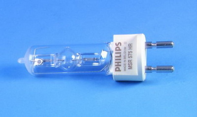 HMI / MSR / HMP / OMI LampenExtrem hohe LichtausbeuteBeste FarbwiedergabeDrei- bis vierfach höhere Lichtausbeute gegenüber GlühlichtLicht wird über einen Lichtbogen zwischen zwei Elektroden erzeugtTageslichtähnliches Spektrum (zwischen 4500 und 6500 K)Konstantes Farbtemperatur und Farbwiedergabeverhalten über die komplette LebensdauerHalogenmetalldampflampen haben ein aus vielen Linien bestehendes Spektrum, im Gegensatz zu Temperaturstrahlern wie z. B. Halogen-GlühlampenLampentyp: Halogen-MetalldampflampeHersteller: PHILIPSLampenspannung: 95 VLampenleistung: 575 WLampenstrom: 6,95 ASockel: G-22Lichtstrom: 49000 LmBrennstellung: BeliebigElektrodenabstand: 7 mmFarbtemperatur: 6000 KFarbwiedergabeindex: 95 RaLebensdauer: 1000 hDimmbar: JaHeißzündfähig: JaDurchmesser: 30 mmHöhe: 145 mm