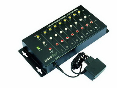 8-facher AV-VerteilverstärkerZur Verteilung von Audio-, Composite-Video- und S-Video-TV-Signalen von einer AV-Quelle auf eine große Anzahl von TV-MonitorenVerkabeln Sie im Reihenschaltungsprinzip eine große Anzahl von TV-Geräten bei gleichbleibender Bildqualität und sparen Sie sich den Kauf von mehreren AV-ReceivernTypische Anwendungen sind Informationssysteme in Kaufhäusern, Schulen, Hotels, Bahnhöfen, Flughäfen etc.Eingebauter Verstärker zur verlustfreien Verteilung von Video-SignalenSignalübertragung bis 50 MeterZusätzlicher Aux In zum Anschluss einer Musikquelle12 V Spannungsversorgung über mitgeliefertes NetzteilSpannungsversorgung: 100-230 V AC, 50/60 Hz ~,über mitgeliefertes NetzteilGesamtanschlusswert: 6 WVideo1 x Eingang: 1 Vss/ 75 Ohm, Cinch Composite8 x Ausgänge: 1 Vss/ 75 Ohm, Cinch CompositeVerstärkung: 2 V, 1 V (mit Abschluss)/ 75 OhmVideoverlust: 100 MHzAudio2 x Eingänge: 22 kOhm, Stereo-Cinch und 3,5-mm-Klinke8 x Ausgänge: 1 kOhm, Stereo-CinchVerstärkung: Nominal 0 dBKlirrfaktor: 0,05 %Kanaltrennung: >75 dBFrequenzgang: 20 Hz - 100 kHzGeräuschspannungsabstand: 100 dBMaße: 282 x 128 x 50 mmGewicht: 1 kg