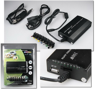 Dieses SlimLine-Netzgerät ist sehr vielseitig und eignet sich z.B. für LED-Stripes, Notebooks und TFT-Monitore. Universell durch 8 Anschlussadapter für Geräte der meisten Hersteller. Technische Details: - Eingang 12V= + 110-240V~ - Ausgang 12, 15, 16, 18, 19, 20, 22, 24V= - USB-Ausgang für 5V=/500mA max. - Leistung max. 100W - Schaltnetzteil-Bauweise mit Wirkungsgrad >80% - inkl. Netzkabel mit Eurostecker - Innen/Außen-Ø der Koax-Adapter: 1,35/3,5mm, 1,7/4mm, 1,74/4,8mm, 1,7/5,5mm, 2,1/5,5mm, 2,5/5,5mm, 3/6,3mm, 4,3/6mm - BxTxH 110x60x25mm