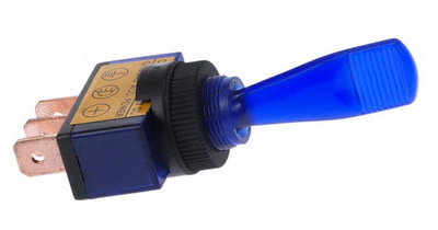 Schalter mit Leuchte Blau Ein/Aus, mit eingebauter Glühlampe 12V und Distanzring, somit für ArmaturenbrettundKonsoleneinbau geeignet.Bohrung 12,5 mm. Spannung max 16 AmpGewicht:0,01kg
