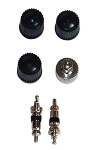 Ventil+Kappen-Set Verwendbar für Auto, Motorrad und teilweise BMX-, MTB- und ATBFahrräder.Bestehend aus Schlüsselkappe, 3 KST Kappen, 2 Ventileinsätze.6-tlg.Gewicht:0,02kg