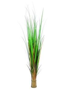 Platzsparendes Gräsergebinde - schnell umzustellenGrüne Palmgras-Stengel mit abgestorbenen GräsernMit GebindefußHöhe 150 cm