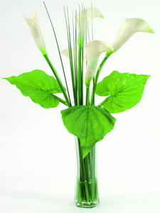 | Produktname: | Calla im Glas 3 Blätter 5 Blüten 64cm, Kunstpflanze |