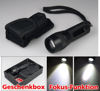 | Produktname: | LED-Taschenlampe 'TL9 Black Beam CREE', 3W, 120lm, fokussierbar, m. Gürteltasche |