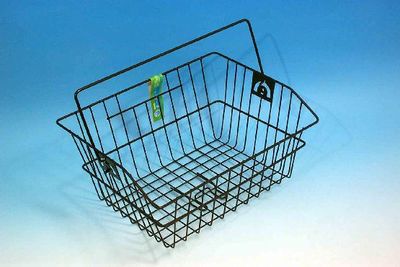Fahrradkorb CityDie klassische Ausführung mit zwei Halteklauen und stabilem Tragebügel. Inhalt: ca. 25 LiterFarbe: schwarzMaterial: MetallMaße: ca. 395 x 300 x 170 mmVerpackung: Banderole