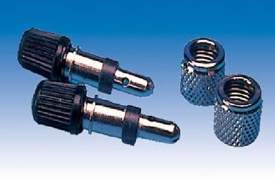 Blitzventil StandardQualitätsblitzventile mit Metallüberwurfmuttern und schwarzen Kunststoff-Abdeckkappen.2 Stück.Farbe: schwarz-silberVerpackung: Polybeutel auf Karte