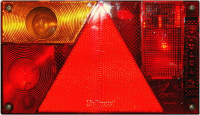 Rückleuchte Multipoint I Rechtstail lampBlink-, Brems-, Schluss-, Kennzeichleuchte, Dreieckrückstrahler.5-poliger Bajonett Anschluß. Mit Leuchtmittel (2 x 21W, 1 x 21/5W).Abmessungen 240 x 140 x 52 mmInhalt 1 Stück