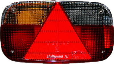 Rückleuchte Multipoint II Linkstail lampBlink-, Brems-, Schluss-, Kennzeichleuchte, Dreieckrückstrahler.5-poliger Bajonett Anschluß. Mit Leuchtmittel (2 x 21W, 1 x 21/5W).Abmessungen 244 x 138 x 60 mmInhalt 1 Stück