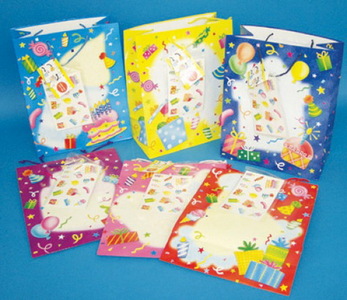 Geburtstagstüte 30x25cm mit Stickern, 12 Stück