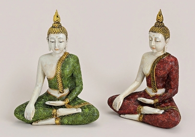 BUDDHA SITZEND GRUEN/ROT POLY 2-F.S.22X13X30C