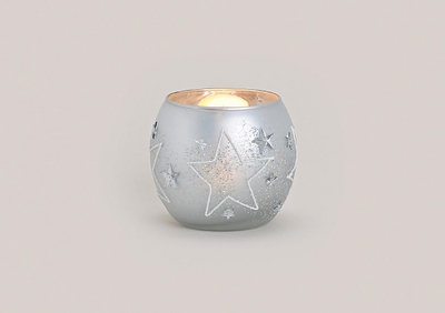 WINDLICHT SILBER STERNDEKOR GLAS 7X8CM}