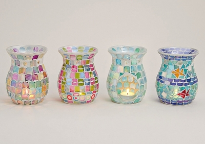 DUFTLAMPE GLAS MOSAIK 4FACH SORT.14X10.5CM