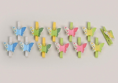 KLAMMER-SET SCHMETTERLING MET./HOLZ 8TLG 7CM