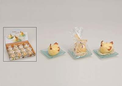 KERZE HUHN M.GLASUNTERSETZER 5X7X7CM - Mindestauftragswert 300 € innerhalb Deutschland / Frachtfrei ab 1.200 € innerhalb Deutschland / Zahlungskonditionen laut AGB, Vorkasse oder Nachnahme für Neukunden
