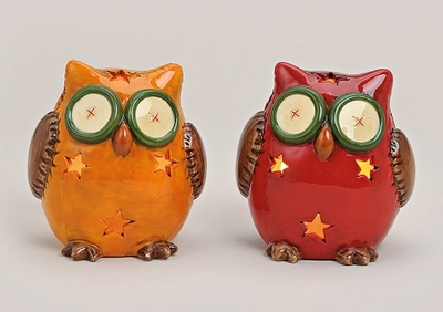 WINDLICHT EULE ROT/ORANGE KERAMIK 2-F.S.13CM