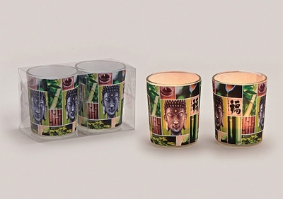 WINDLICHT-SET BUDDHA GLAS 5X5X6CM