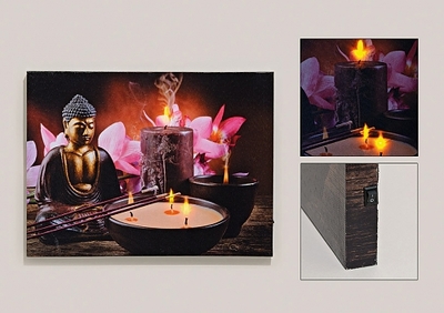 WANDBILD A.KEILRAHMEN M.3 LEDS BUDDHA 40X30CM